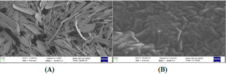 SEM images of nano PZ by (A) sonication and by (B) solvothermal process.