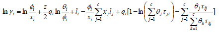 where c is the number of components in the mixture, αji>= αij>, T is given in Kelvin and xj> is the mole fraction of component j, respectively. The corresponding equations for the UNIQUAC model [6] are given below